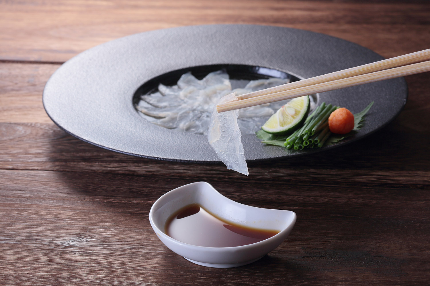 ふぐはポン酢が命。ふぐの旨みを最大限に引き出す名脇役が、ポン酢です。 福姫のポン酢は、三河、美濃地方原産の醸造調味料と、徳島県産のおいしいすだち、ゆず等の100%柑橘酢を独自の配合比でブレンドした自家製ポン酢です。化学調味料やお酢は一切使用しておりません。厳選素材を集め、試行錯誤を重ね続け完成した逸品です。天然果汁と調味料が調和した味を、お楽しみください。
